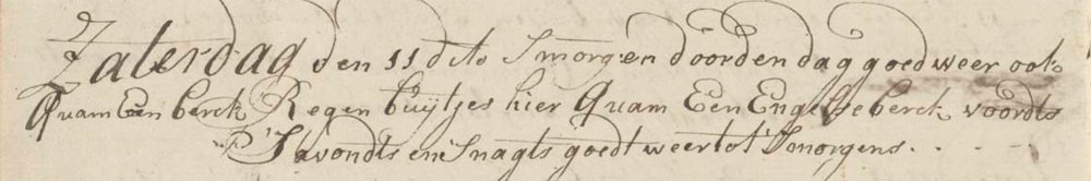 In the morning and throughout the day we had good weather, also with some small rain showers. An English A type of sailing vessel with three or more masts having the foremasts rigged square and the aftermast rigged fore-and-aft.barque came here. Throughout the evening and night we had good weather, till morning.