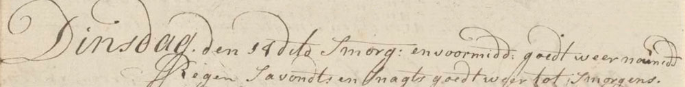 Caribbean 14 September 1762 Essequibo, Guyana First mate’s logbook In the morning and forenoon we had good weather, but rain in the afternoon. At evening and night we had good weather till morning. Logbook Tags No tags