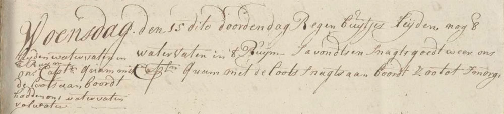 During the day we had showers. We loaded another 8 water barrels into the hold, our water barrels were already full of water. In the evening and at night the weather was good. At night, our captain came on board with the pilot. The weather stayed the same till morning.