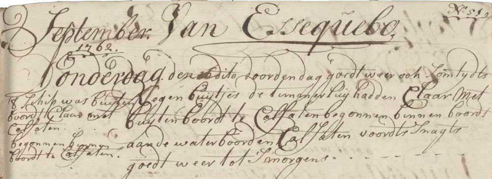 Caribbean 16 September 1762 Essequibo, Guyana First mate’s logbook We had good weather throughout the day, also with some rain. The carpenters finished caulking the outside and began to caulk inside on the in-wales. We had good weather throughout the night, till morning. Logbook Tags crewcarpenter