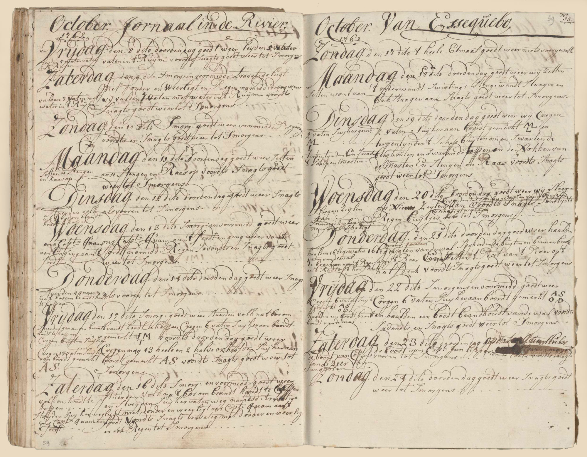 share btn Facebook Twitter Mail 24 October 1762 Essequibo, Guyana Caribbean First mate’s logbook Good weather throughout the day, at night good weather till morning. Tags No tags In the field below add a tag to make the blog better searchable. More about adding tags. Tag E-mail