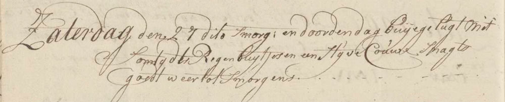 In the morning and throughout the day there was a squally sky with occasional rain showers and a stiff breeze. At night the weather was good, till morning.