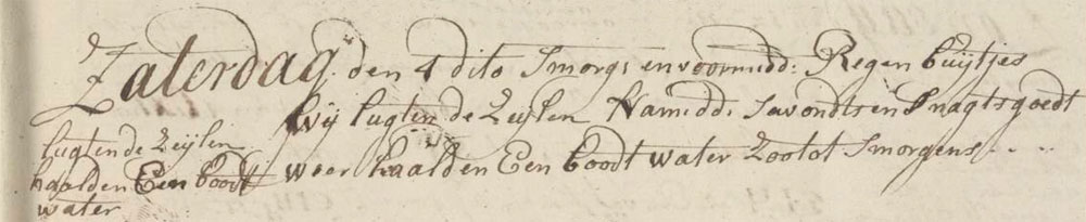 Caribbean 4 December 1762 Demerara, Guyana First mate’s logbook In the morning and forenoon we had some showers and we aired the sails. In the afternoon, evening and night the weather was good. We sent the boat to fetch water. Logbook Tags No tags