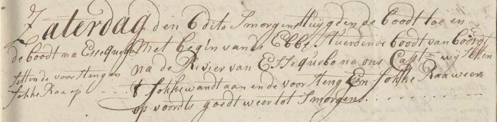 In the morning we rigged up the boat and sent it off board at the beginning of the ebb tide to the river of Essequibo RiverGuyanaEssequibo, to our captain. We put up the fore rigging, fore topmast and fore yard again. Good weather till morning.