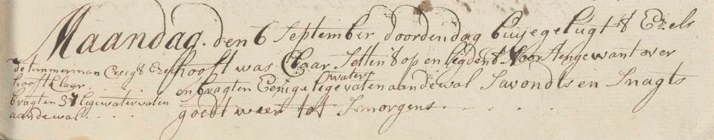 Throughout the day there was a squally sky. The cap was finished so we set it up and put the fore topmast shrouds over. We brought some empty water barrels to shore. In the evening and at night the weather was good, till morning.