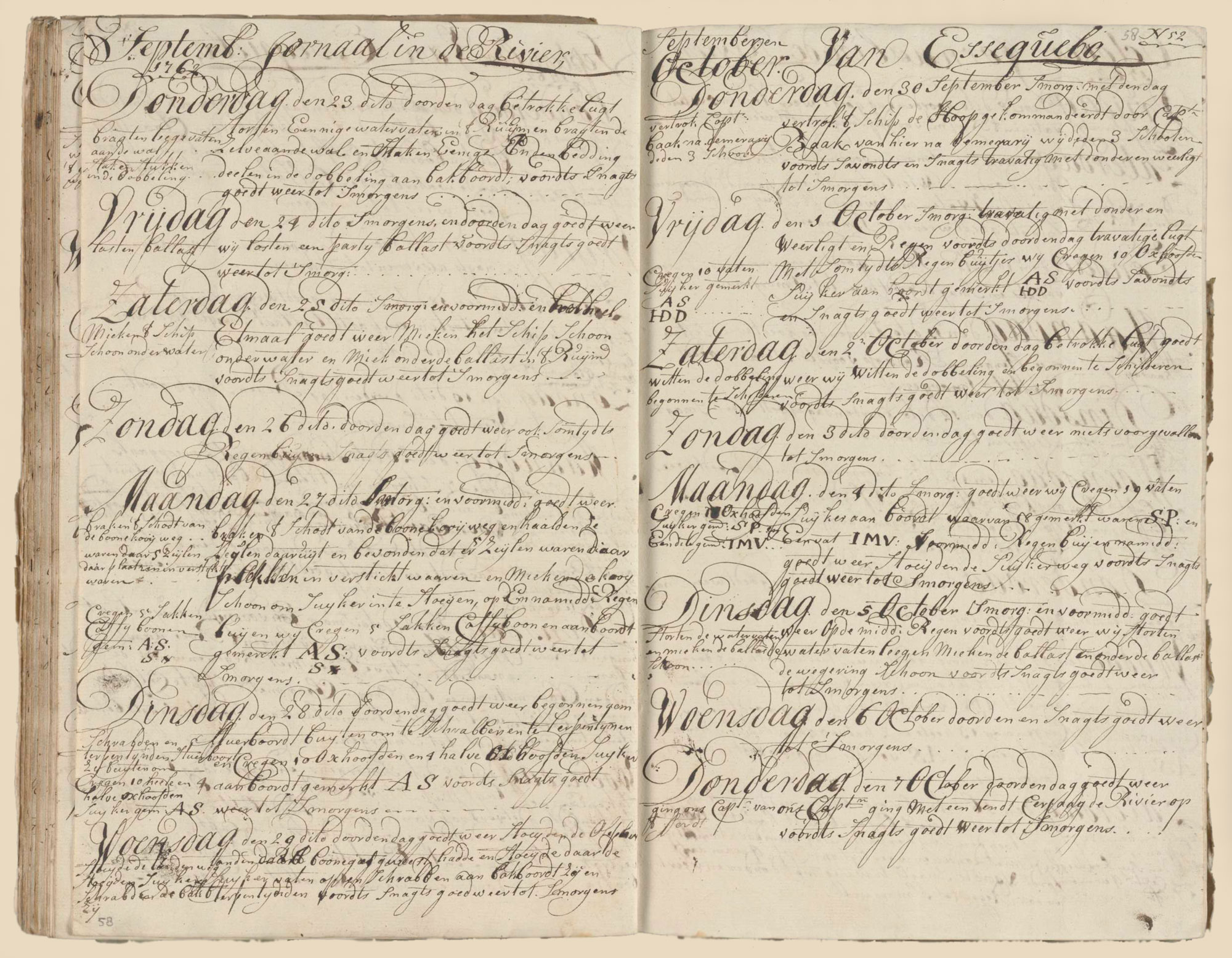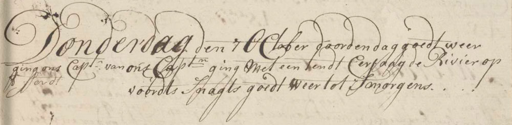 Throughout the day good weather. Our captain went up the river with a tent-barge. Throughout the night good weather till morning.