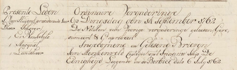 Ordinaire vergaderinge op dingsdag den 14 september 1762