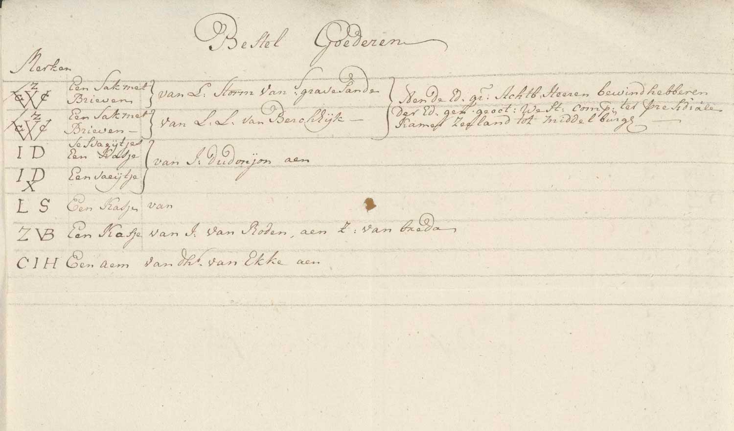 - Z CWC [brand], a bag containing letters of L.L. van Bercheijk to the Honourable Grand Lords directors of the Honourable Grand West India Company at the presiding chamber of Zeeland in Middelburg